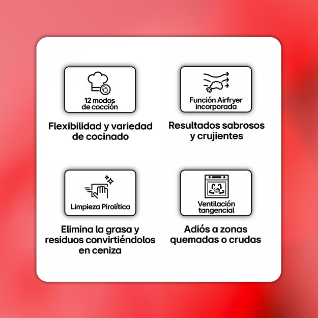 WSED7612S.BSTQEUR Horno LG Instaview 76 litros A con Air Fryer Ficha técnica de producto 799,00 € Ahorra un 35% 517,36 € Más información Comprar ahora Comprar ahora